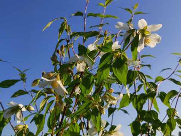 De boerenjasmijn is een geslacht van bladverliezende struiken die allemaal bloeien vanaf het begin van de zomer en dan heel de zomer door. De bloemen komen talrijk aan de struiken en verspreiden een heerlijke geur. Plant ze eens in de buurt van een looppad van je tuin zodat je er elke keer weer van kan genieten. De struiken zijn volledig vorstbestendig en doen het prima in ons klimaat. Ze hebben we een standplaats in de zon nodig op een vruchtbare en goed doorlatende grond. Snoei een aantal oudere takken weg na de bloei zodat jonge takken het volgende jaar kunnen bloeien.