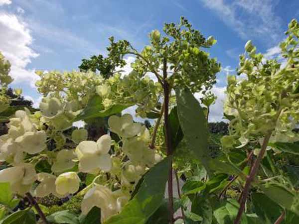 De Pluimhortensia of Hydrangea paniculata ‘Grandiflora’ is een betoverende hortensiasoort die reusachtige kegelvormige bloemen geeft tijdens de zomermaanden. De bladeren zijn groot, ovaalvormig en midden groen van kleur. Grote massieve pluimen met massa’s kleine witte steriele bloemetjes verschijnen in augustus maar ze veranderen geleidelijk doorheen het seizoen naar een mooie roze tint in september. De Hydrangea paniculata ‘Grandiflora’ houdt van een vochtige goed gedraineerde humusrijke grond in de zon of gedeeltelijke schaduw.
